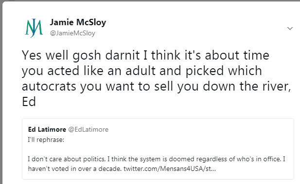 Today’s post is brought to you based on a Twitter joke I made with Ed Latimore. Ed doesn’t vote because he’s politically neutral, choosing not to pick between two parties he feels don’t represent him.