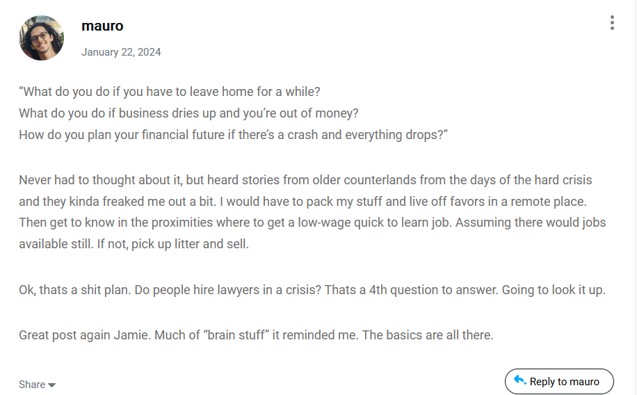 We see that in Mauro’s question; are lawyers useful in a World War III scenario?